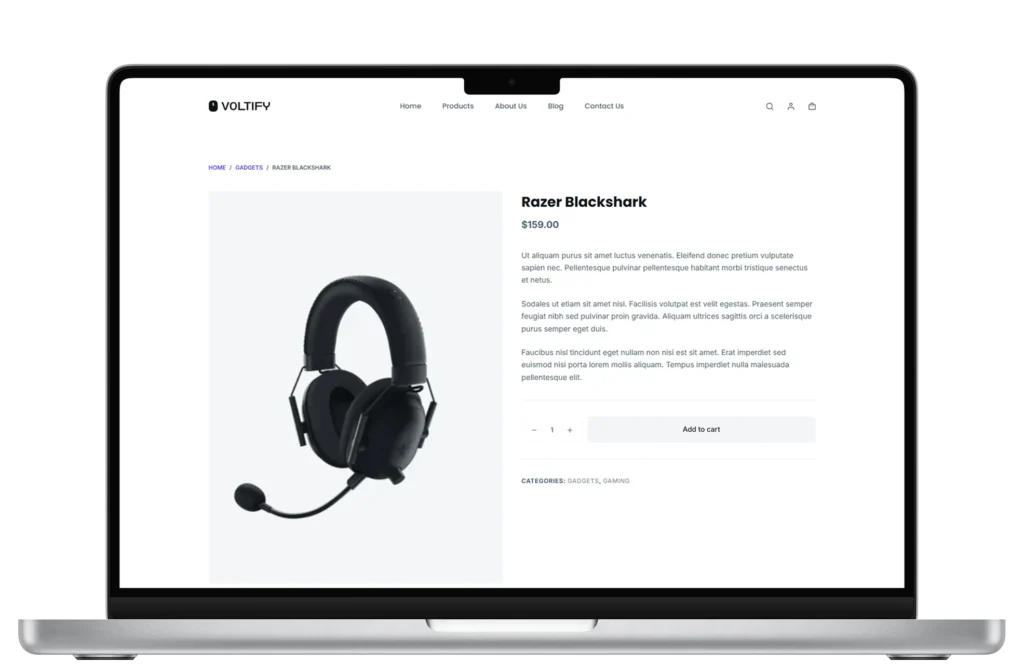 Voltify is a concept eCommerce platform designed for a modern tech gadget brand entering the digital marketplace. The goal was to create a sleek, conversion-focused online store that showcases electronics in a clean, high-performance environment.